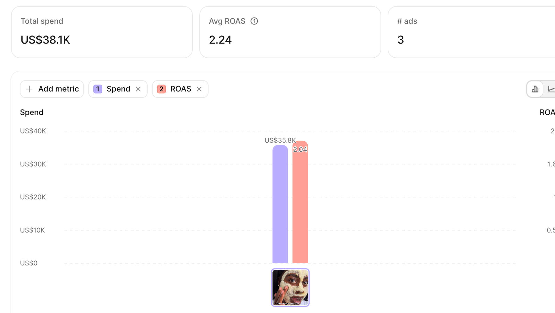 Peak ROAS on a single skincare brand at $38K/mo spend
